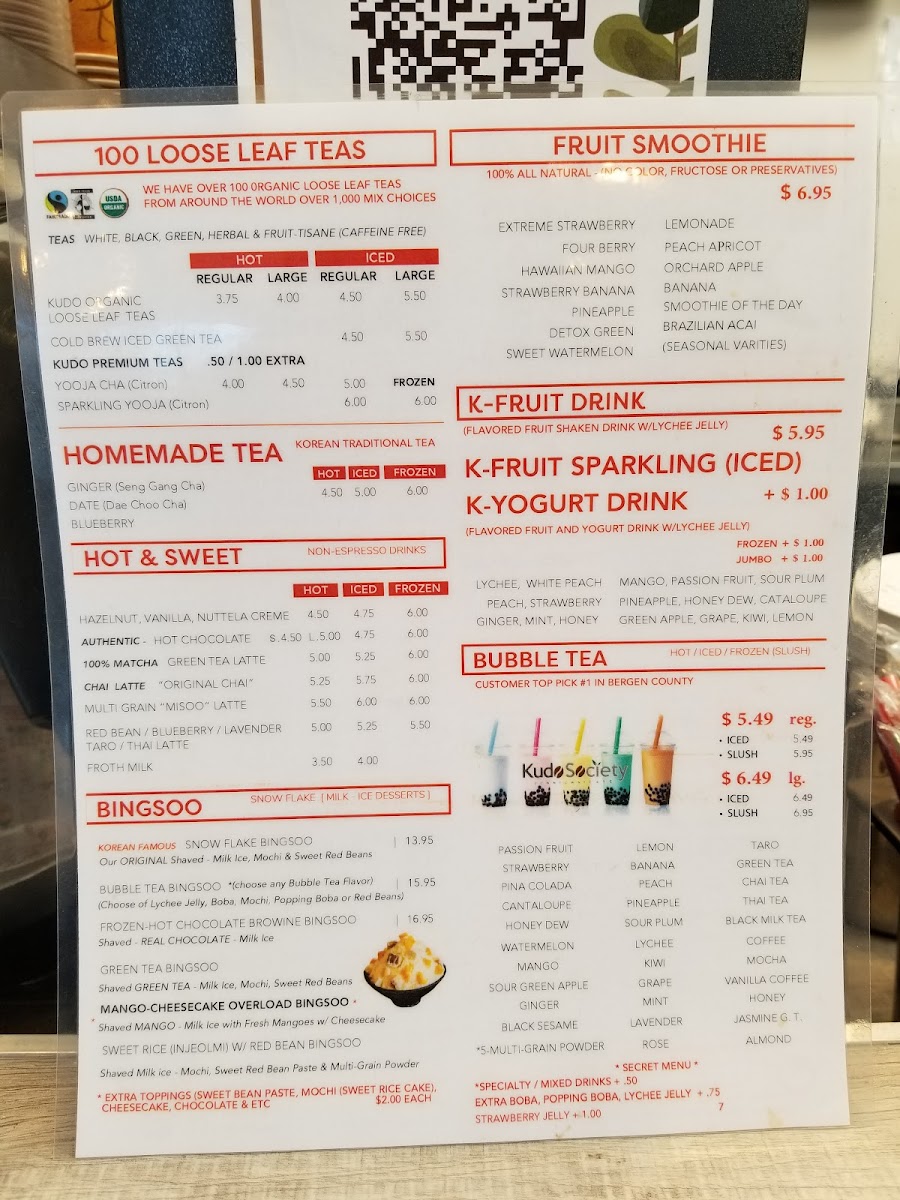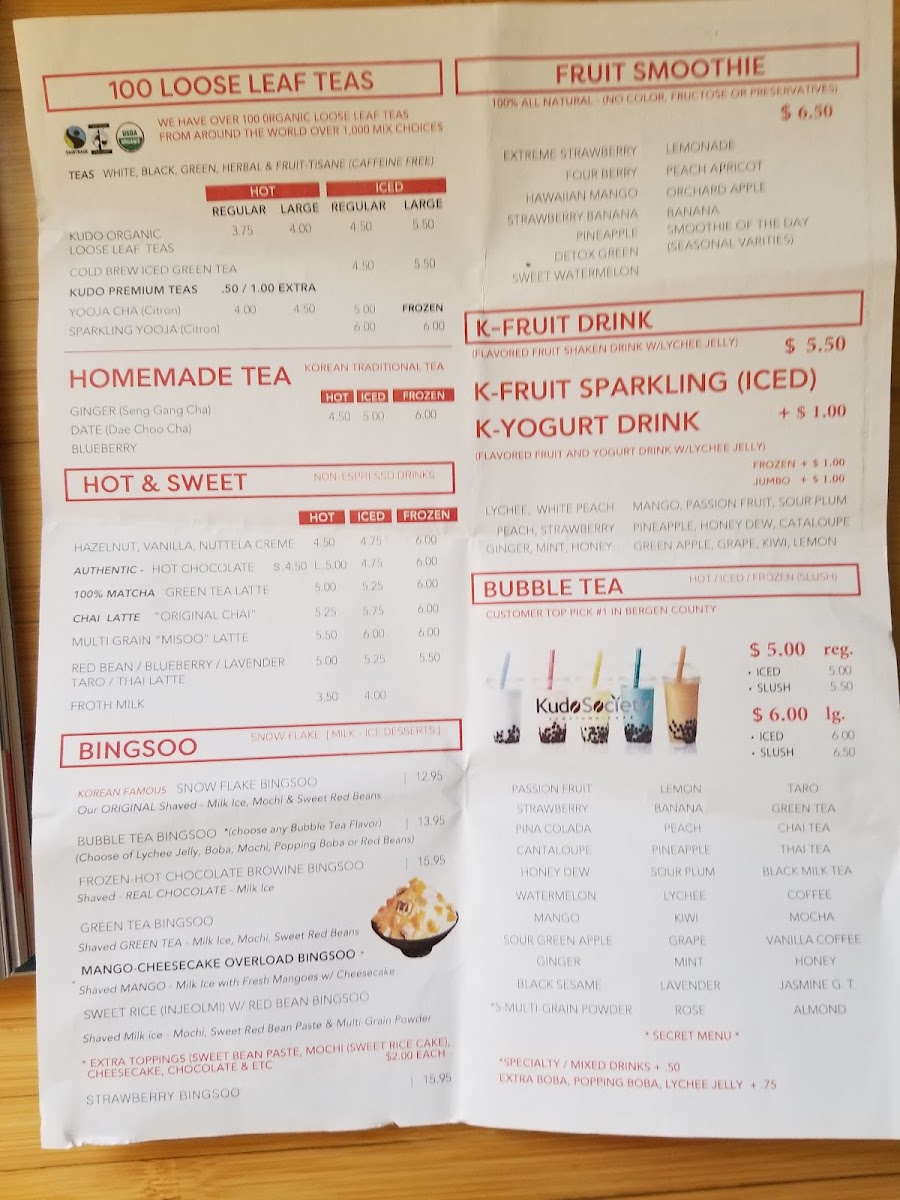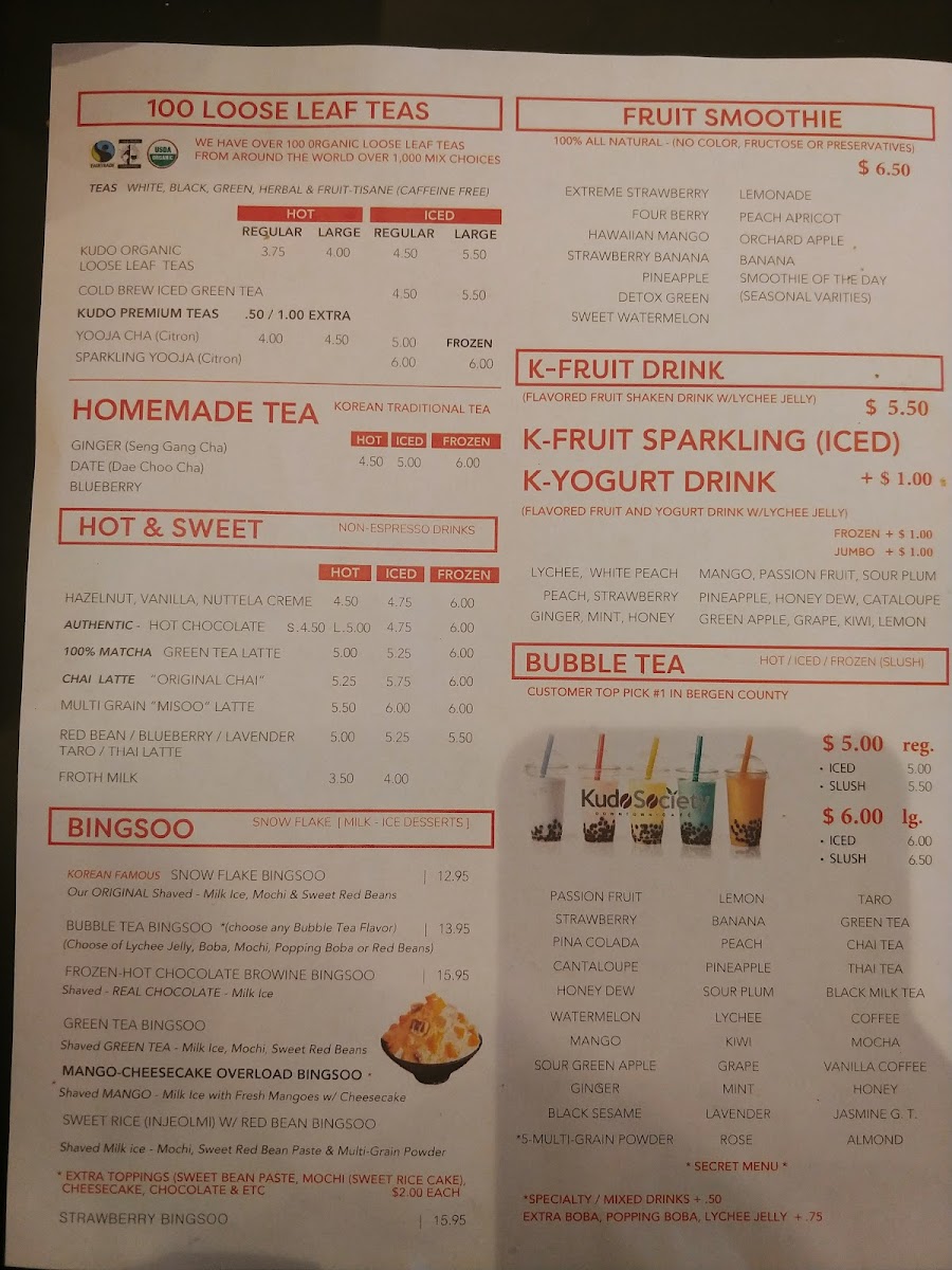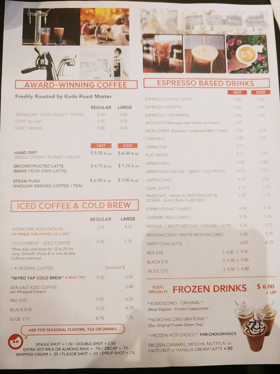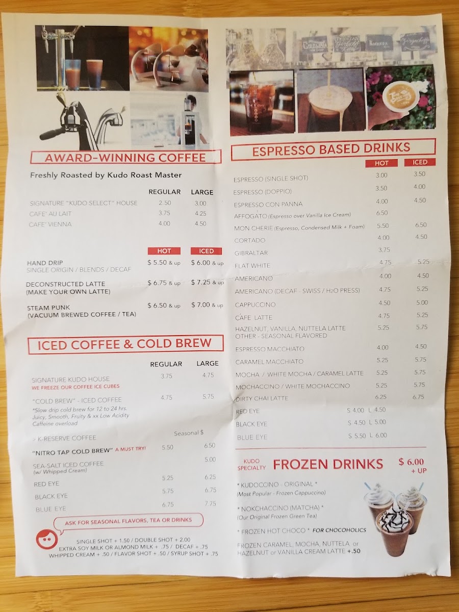Kudo Society Cafe Menu